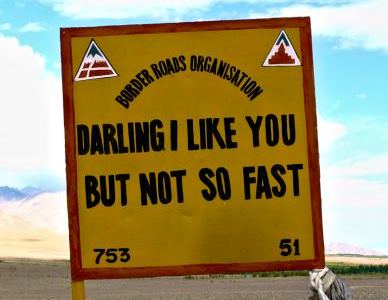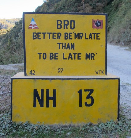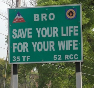 This was obviously written by a male chauvinist at the BRO. But then… on second thought, maybe he is addressing it to the second man sitting in the car and not to the driver’s wife who is quietly fuming cause the men are refusing to ask for directions. Image