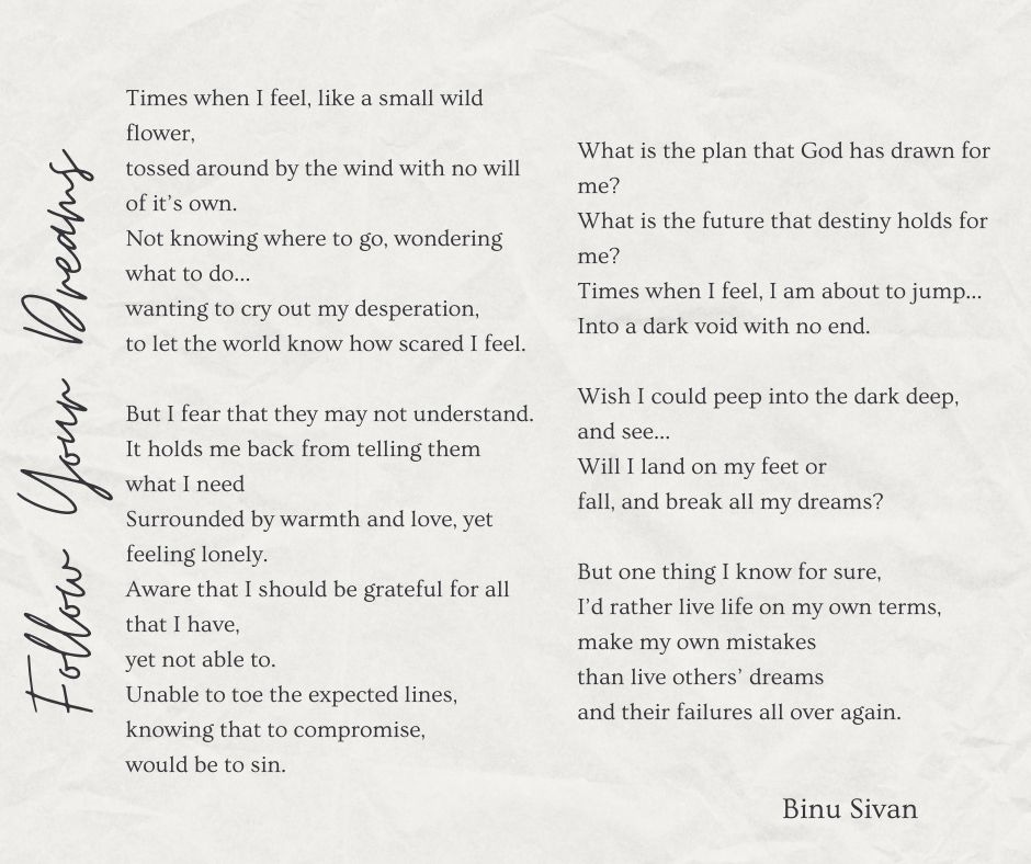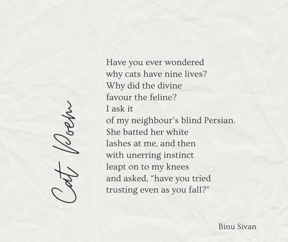 I don’t know if I have ever shared the story about how I started writing poems. It of course helped that I have a father who walked around quoting Malayalam poems and loved reading the great Romantics. Even as a child, I loved poetry, but the shift to writing one myself happened when I was 20 and fresh out of college, with a degree in commerce and no idea as to what I was going to do with my life.